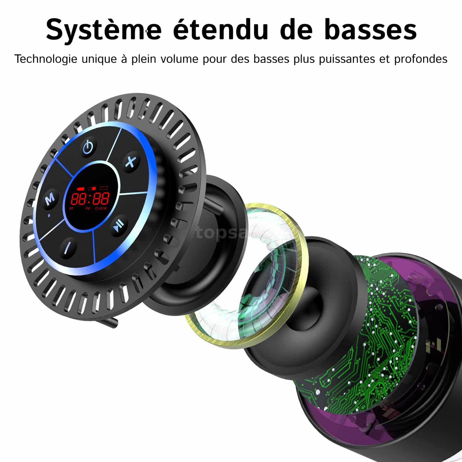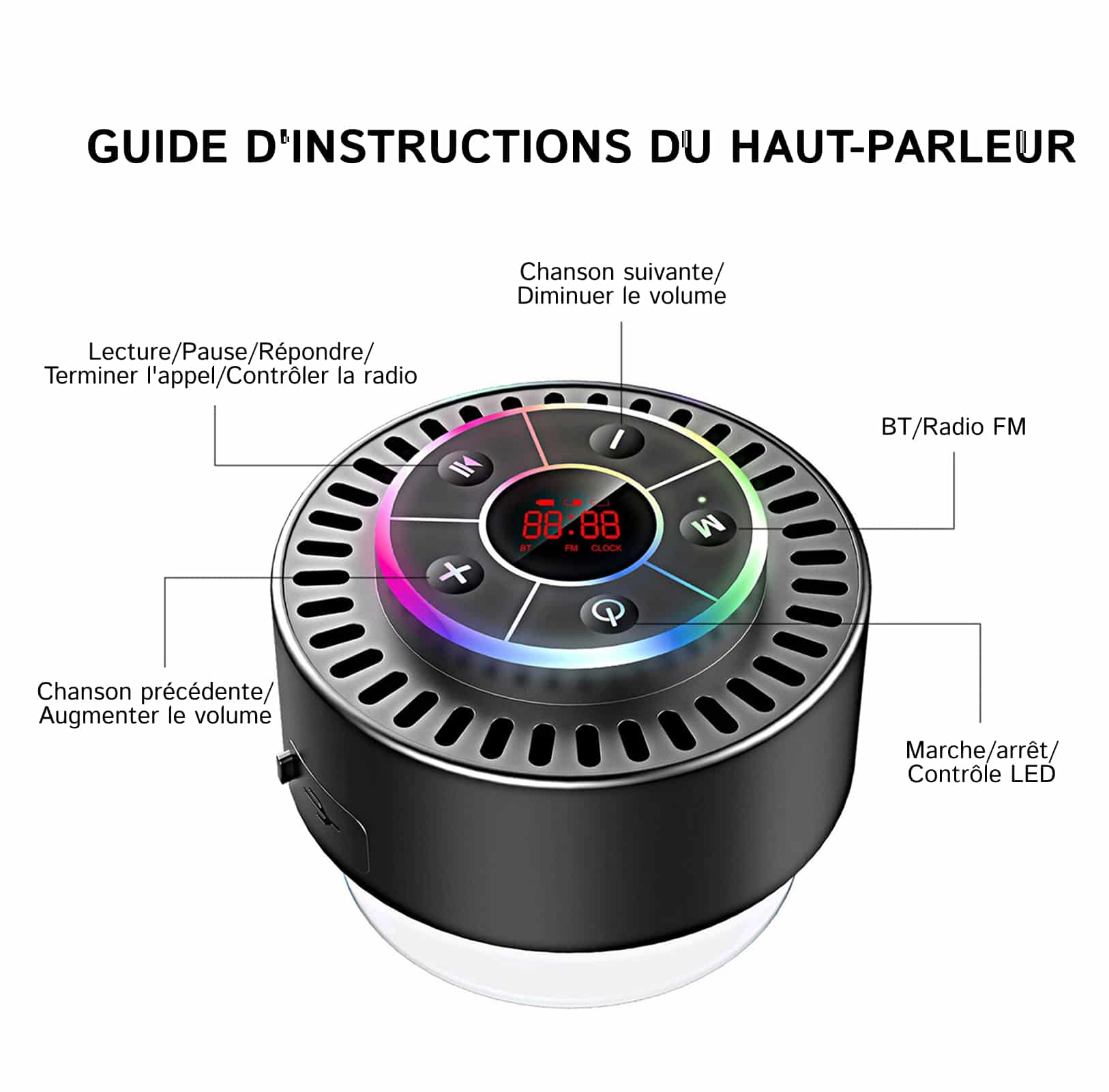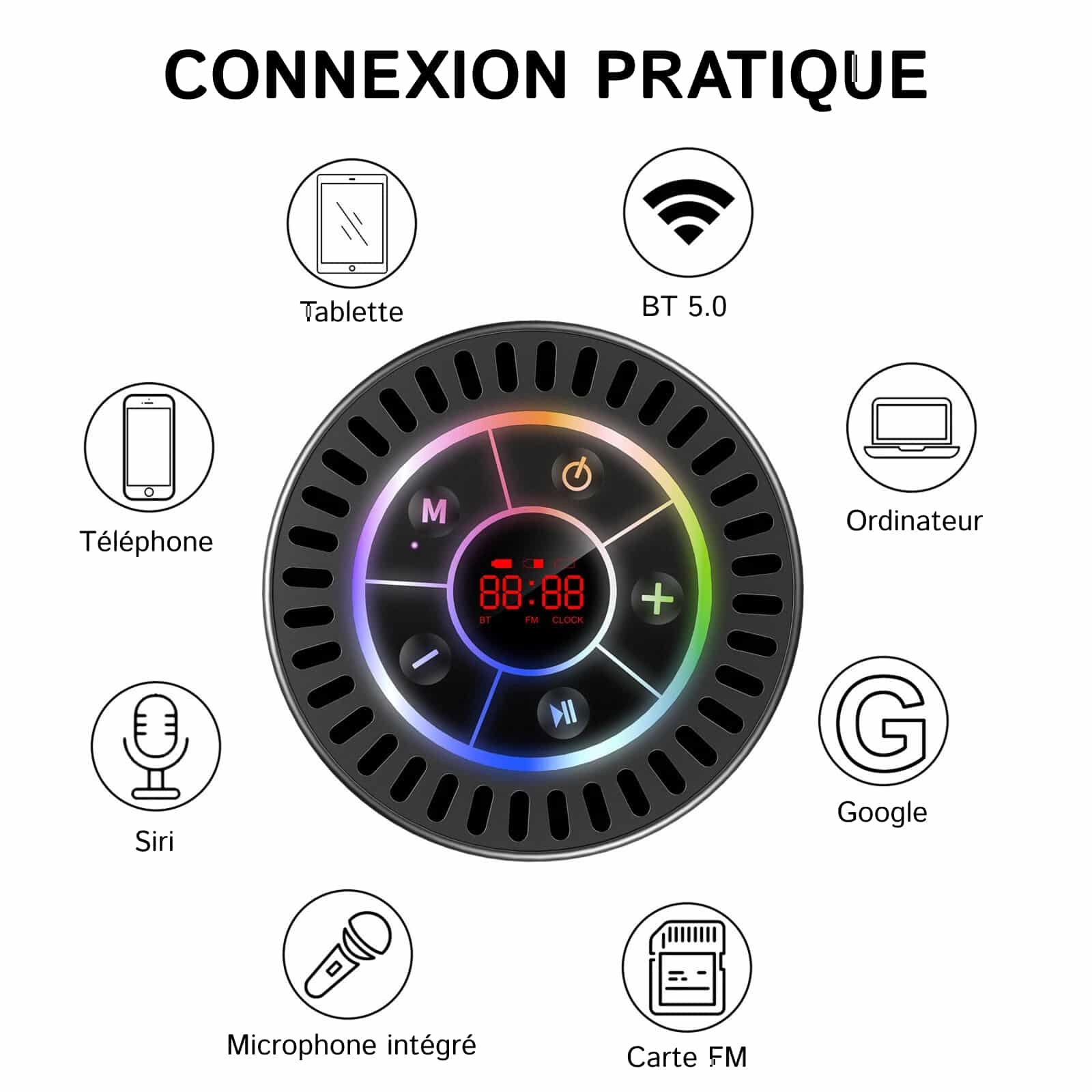 Absolument. Le haut-parleur 5W et le radiateur de basses sont optimisés pour l'acoustique humide. Le son reste clair, puissant et équilibré même sous la douche.