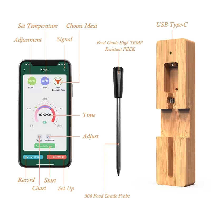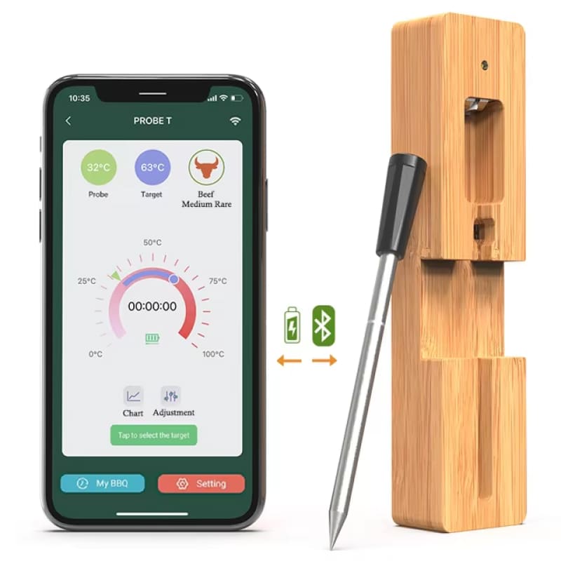 La connexion Bluetooth stable atteint 50 mètres en conditions optimales. Cette portée étendue permet liberté totale de mouvement tout en surveillant précisément températures depuis n'importe quelle pièce.