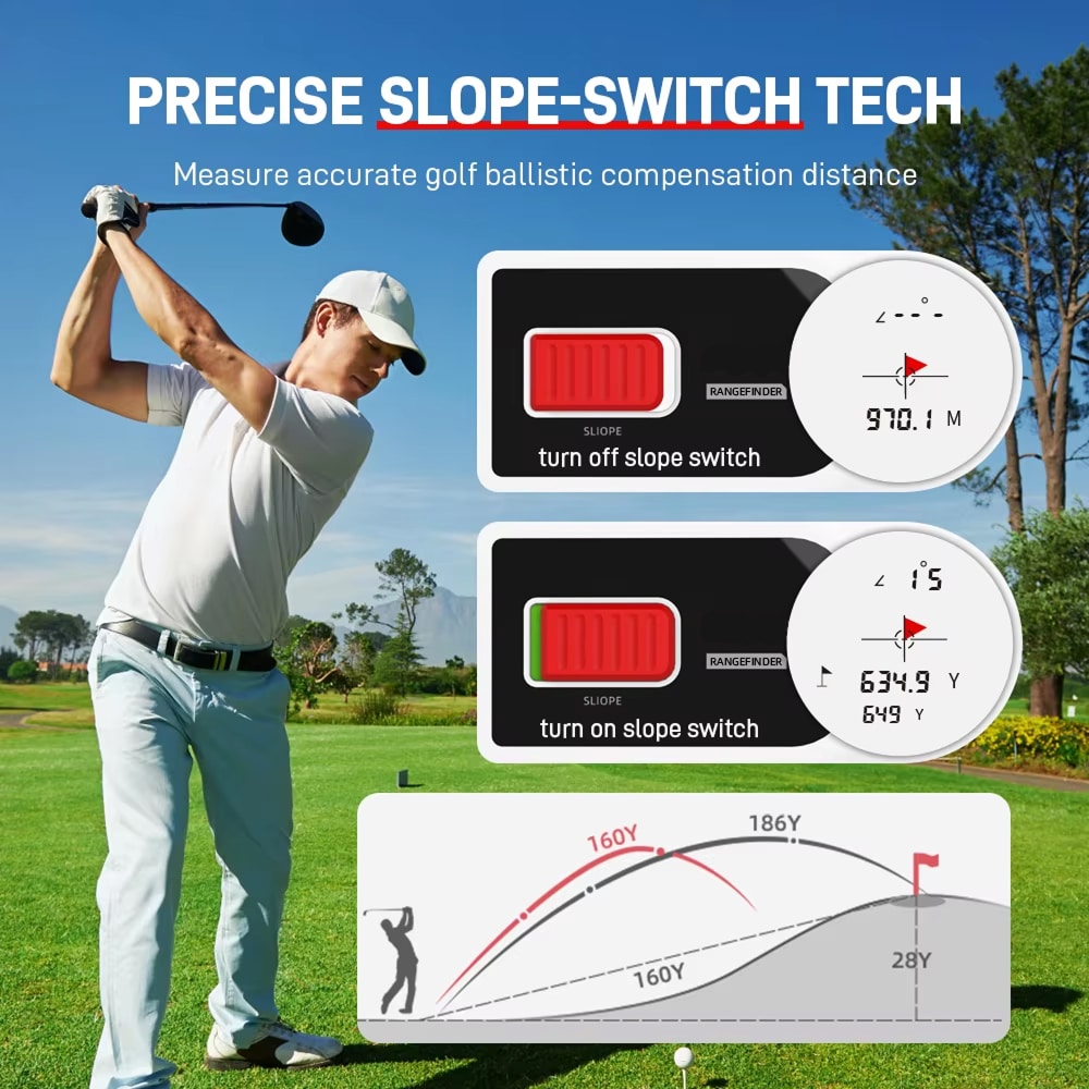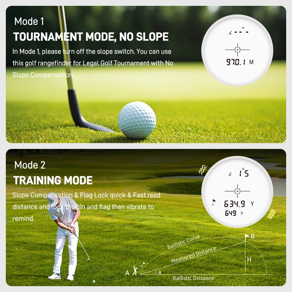 Un simple interrupteur accessible permet de basculer instantanément entre les deux modes. Le changement est intuitif et rapide, vous permettant d'adapter le Télémètre Golf LasrGolli à chaque situation sans manipulation complexe ni perte de temps.