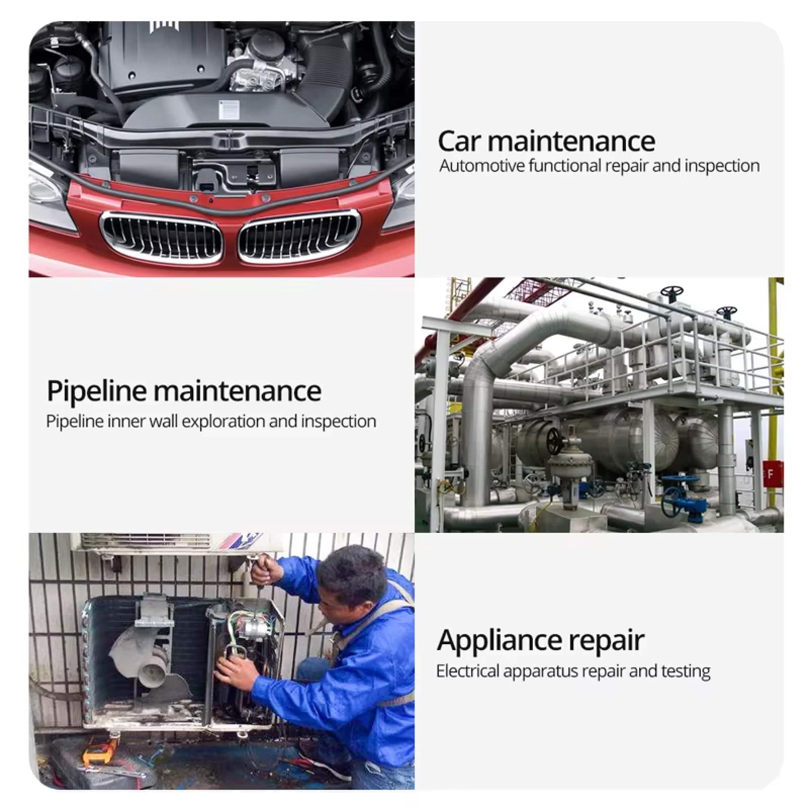 Absolument. Le câble semi-rigide de la MozixCam combine flexibilité et maintien de forme, permettant de naviguer facilement dans les coudes, tuyaux et espaces restreints complexes.