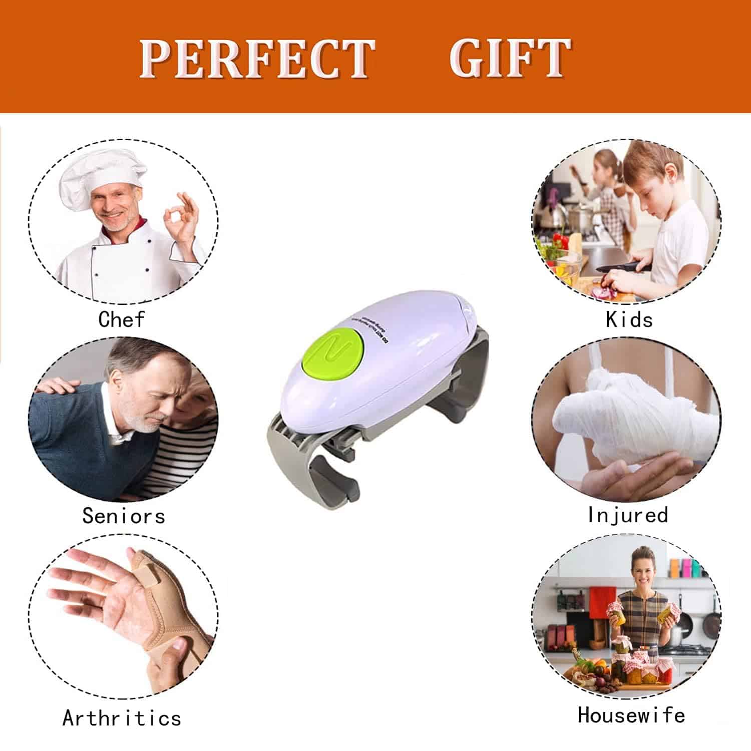 L’activation en un seul bouton permet à tous, quel que soit l’âge ou la force des mains, d’ouvrir facilement les conserves sans effort physique ni frustration quotidienne.