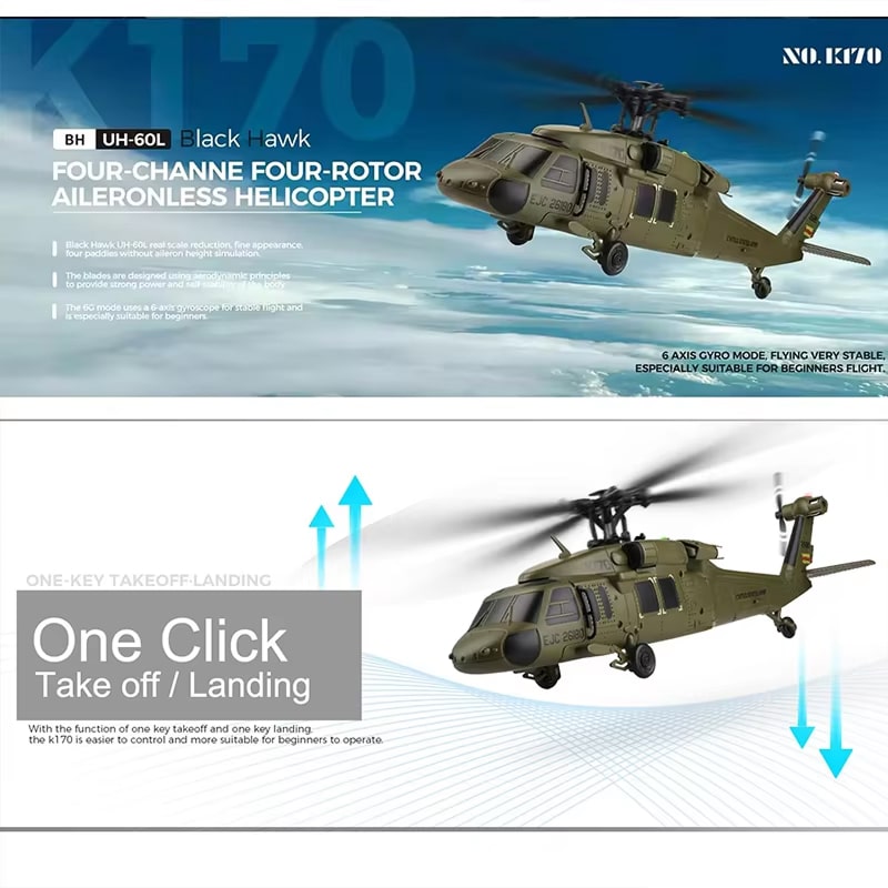 Absolument. Le mode 6G avec gyroscope 6 axes stabilise automatiquement l'hélicoptère. Les fonctions de décollage et atterrissage automatiques permettent une prise en main immédiate sans expérience préalable.