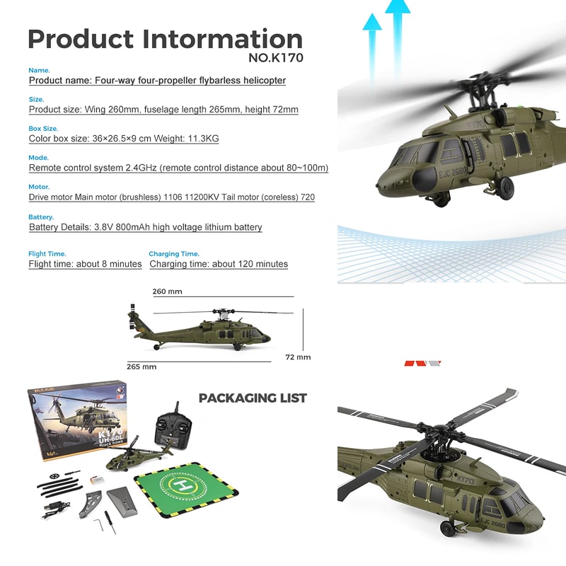 Le RotoMavi K170 excelle dans les vols stables et manœuvres standard : montée, descente, rotation, translation latérale. Son design privilégie la stabilité plutôt que l'acrobatie extrême pour une expérience réaliste.