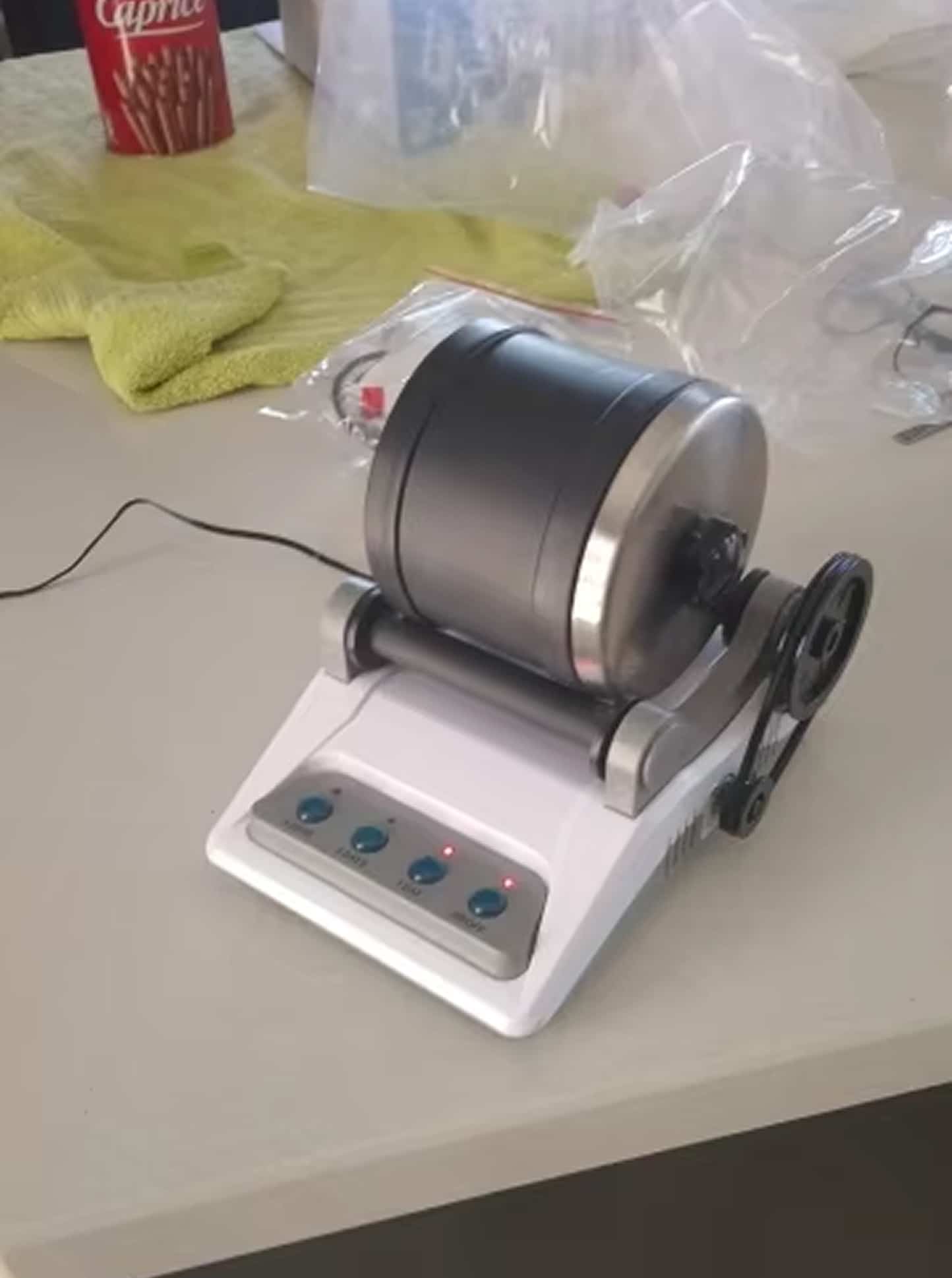 La minuterie automatique contrôle les cycles de traitement, et les matériaux inclus aident à identifier quand les pierres atteignent les niveaux de polissage désirés.
