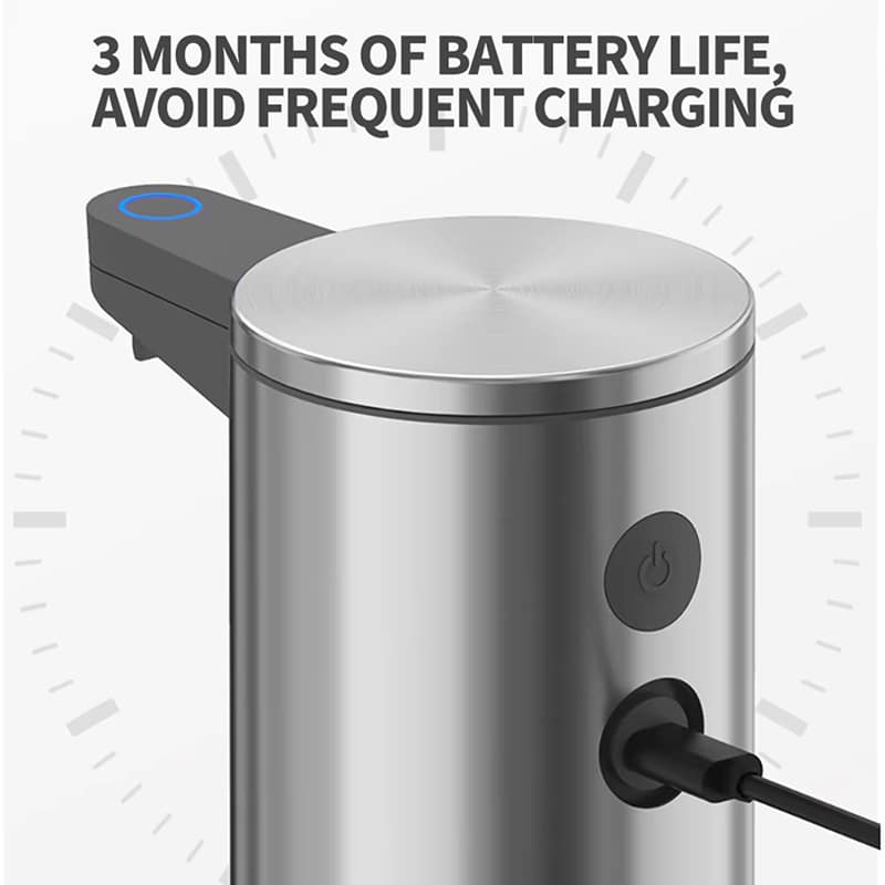 Profitez d’une recharge simplifiée avec l’ouverture en entonnoir, d’une autonomie prolongée de 3 mois et d’un dosage variable selon la distance de votre main.