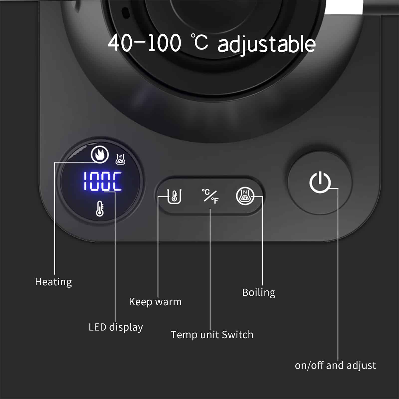 Absolument ! Réglez précisément entre 40°C et 100°C par incréments de 1°C. Thé vert à 75°C, thé noir à 95°C, ou café à 100°C, chaque boisson trouve sa température idéale.